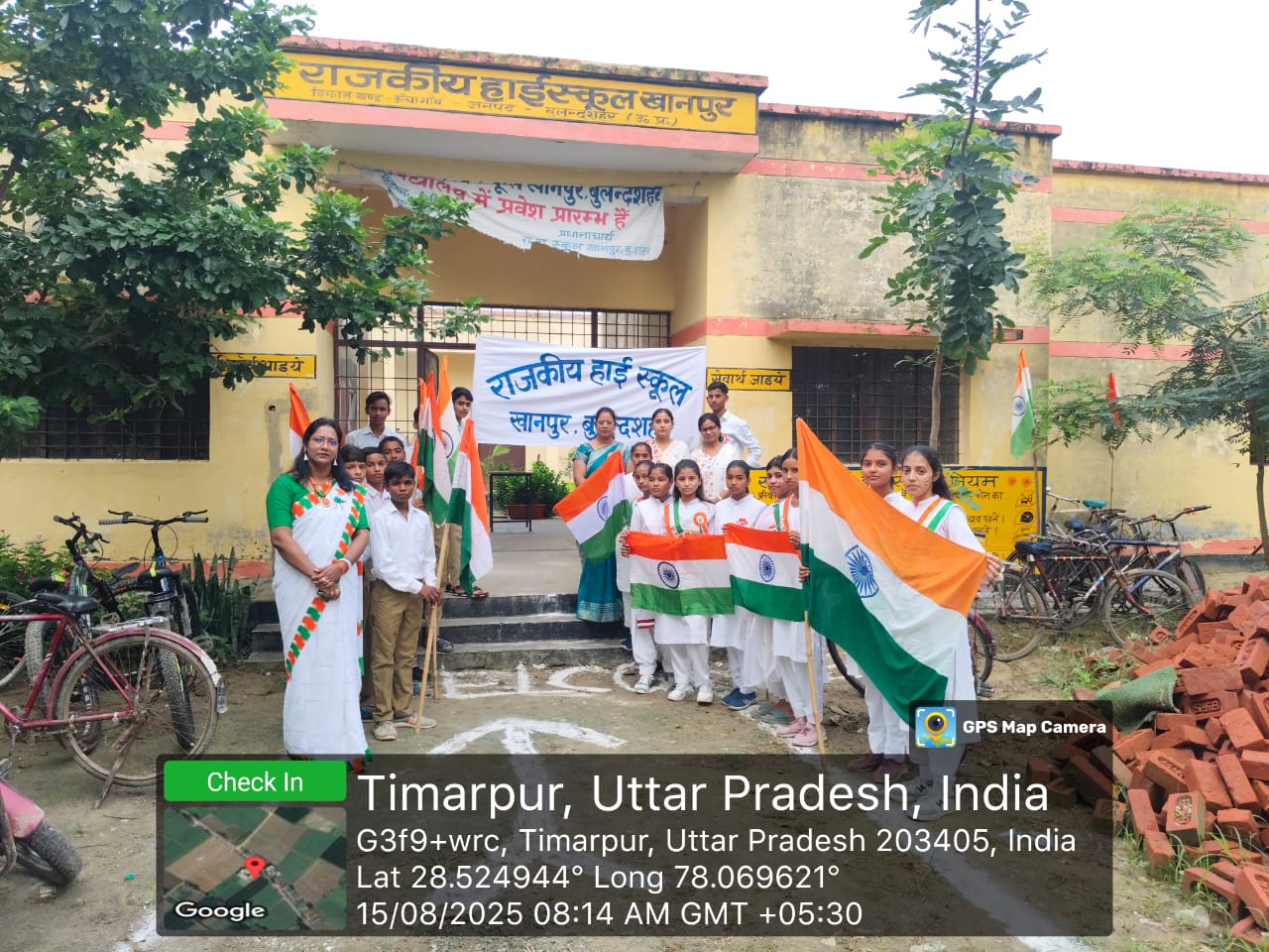 Government High School Khanpur is operated under Rashtriya Madhyamik Shiksha Abhiyan(RMSA). It is located in village Khanpur at Jahangirabad Road which is near about 1.5 km from Khanpur village. The school is situated in Block Unchagaon and Tehsil Siyana. The school is situated in the lap of nature because school building is surrounded by various fields. Our school is clean and has ventilated classrooms, staff room, principal office, laboratory, separate toilets for boys and girls and disabled children. Science laboratory is well equipped. There are various kind of books in bookshelf which students read in the school and issued to students for home. There is a collection of many flowering,non flowering and medicinal plants in school campus.